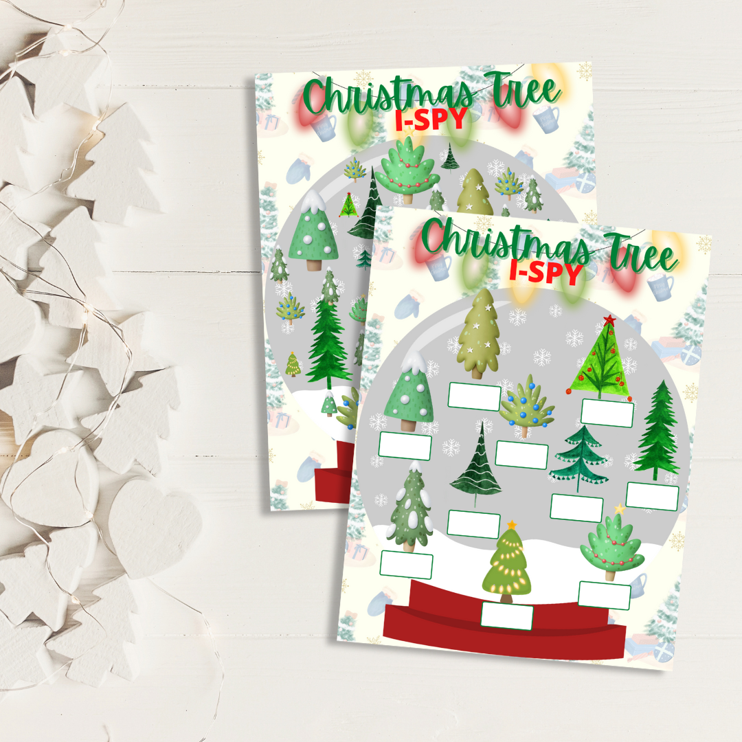 - A 2-page Canva template that includes Christmas Tree I-Spy