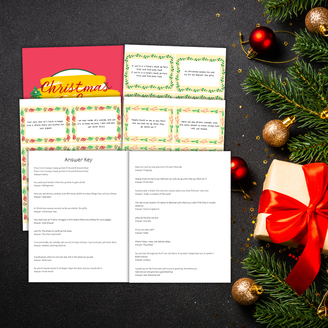 This scavenger hunt set includes pre-made clues and matching answer sheets, designed to guide participants through a series of fun and clever challenges. It’s a creative way to bring joy and excitement to your Christmas morning or holiday gatherings.