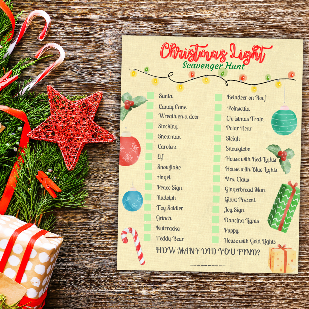 This Christmas Light Scavenger Hunt is the ultimate festive game that will light up your holiday season!
