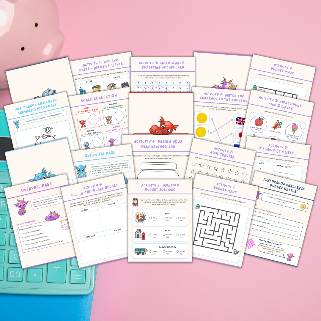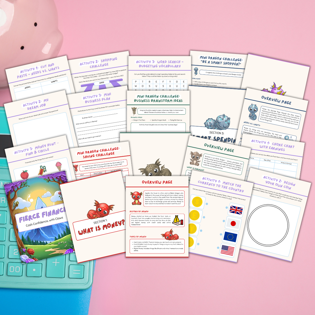 Teach kids the value of money with this playful and educational Financial Literacy Workbook, perfect for introducing saving, spending, and budgeting in a fun way.