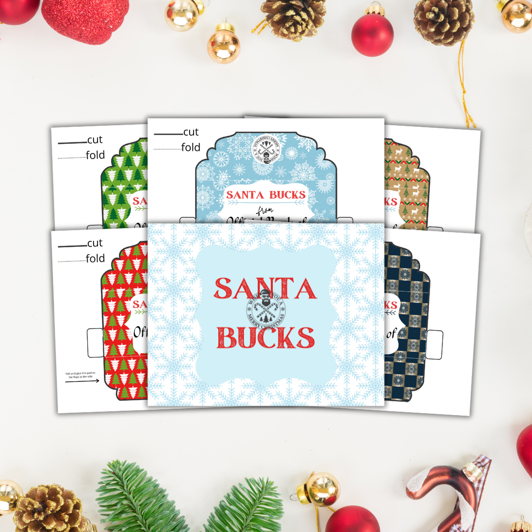 • 5 pages of Foldable Santa Bucks Money Envelope