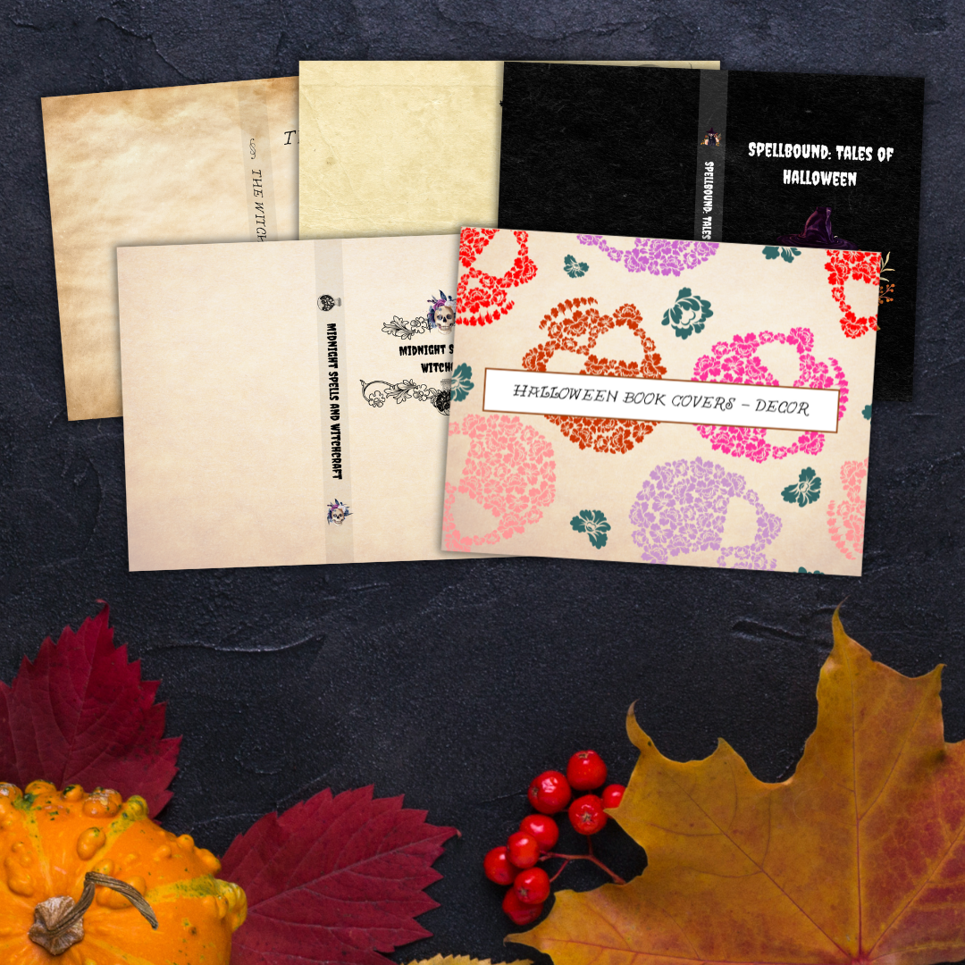Designed with vintage-inspired graphics, creepy typography, and Halloween motifs, these are perfect for creating an eerie atmosphere on shelves, mantels, or party tables, these covers add a festive seasonal twist to your home or event styling.