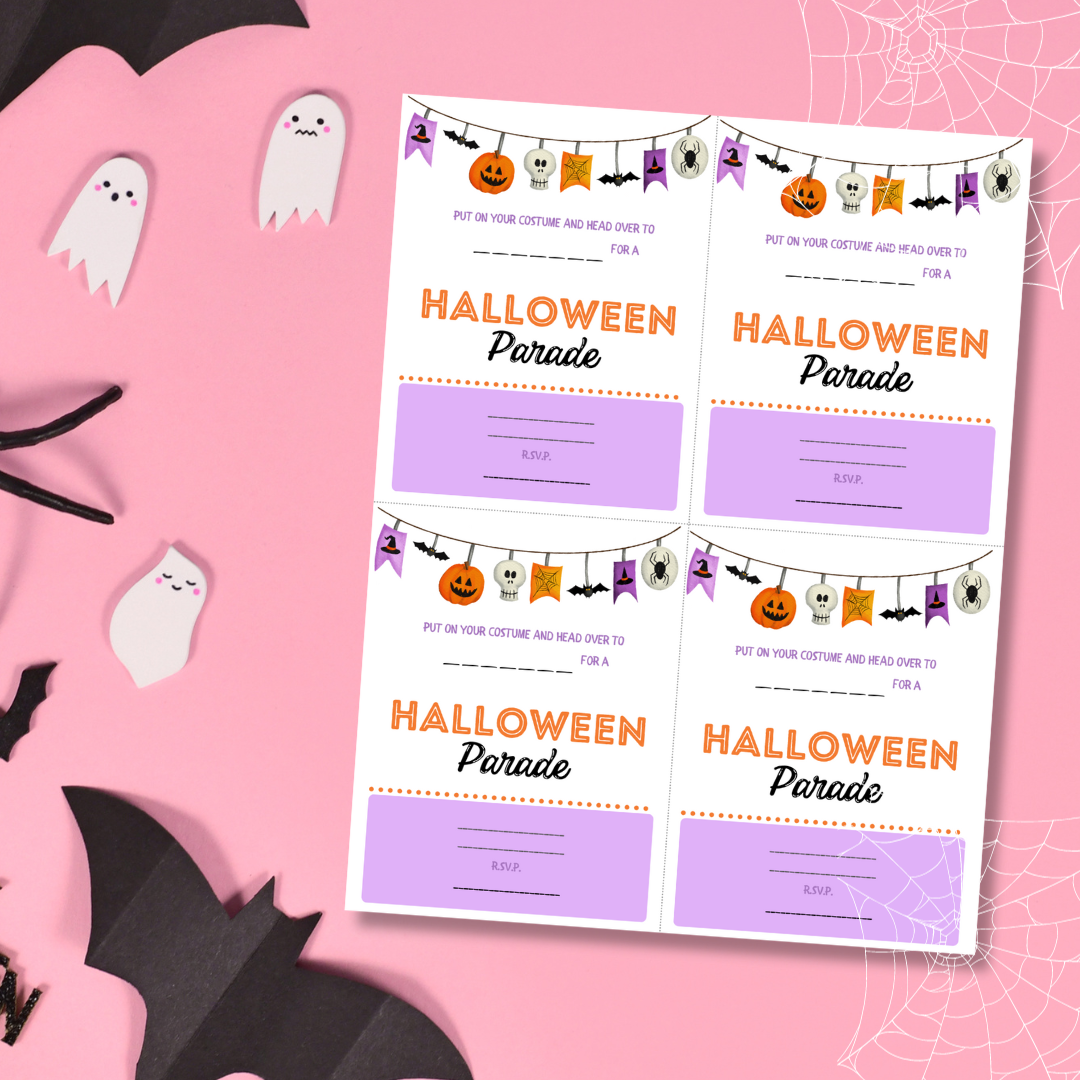 - A Canva template that includes Halloween Parade Invitations (four on a page).