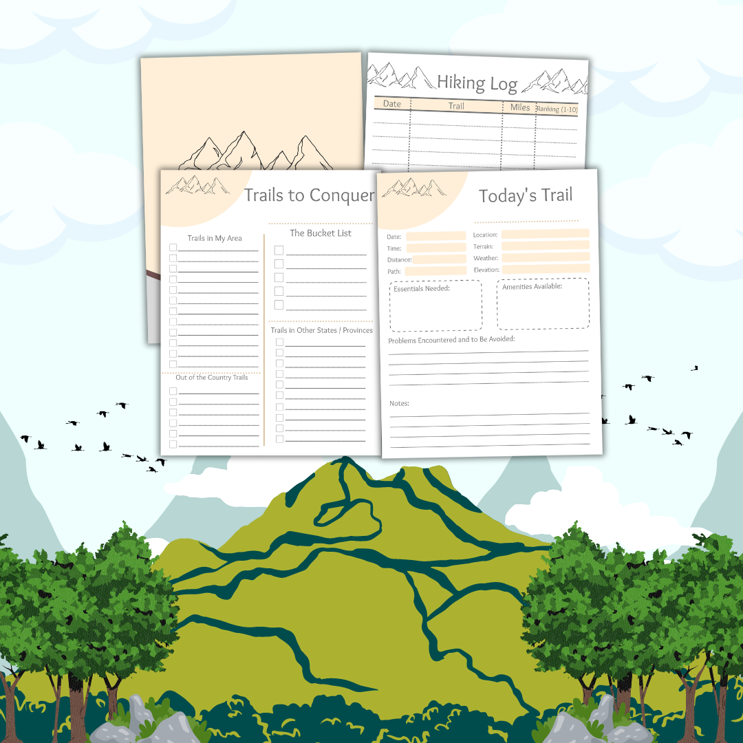 It is designed to enhance your hiking journey by providing you with a detailed Hiking Trail page to plan and record your excursions. The Trails to Conquer page allows you to set and achieve your hiking goals, while the Today’s Trail page keeps you organized and prepared for your daily hikes.