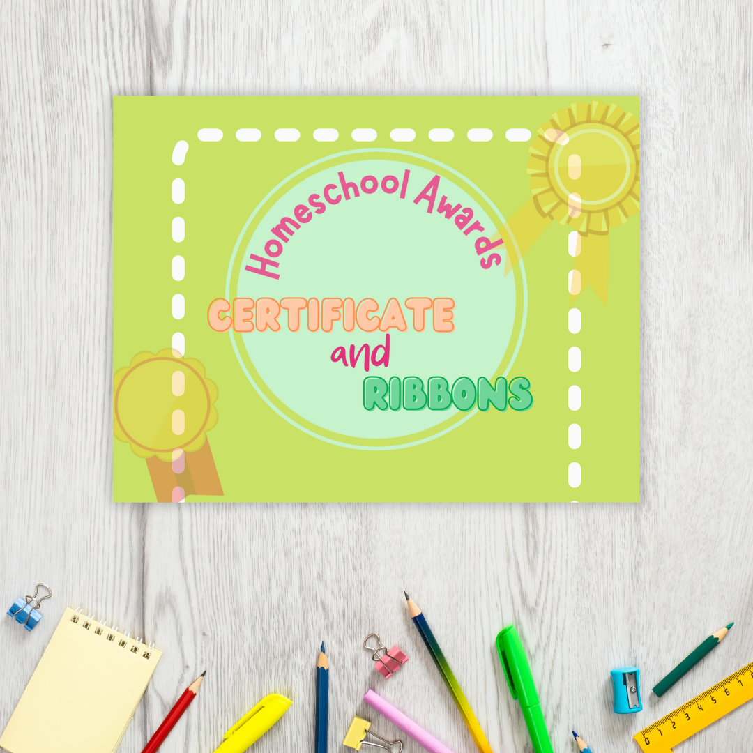 Celebrate the achievements of your homeschool students with this versatile and customizable awards certificate and ribbons template.