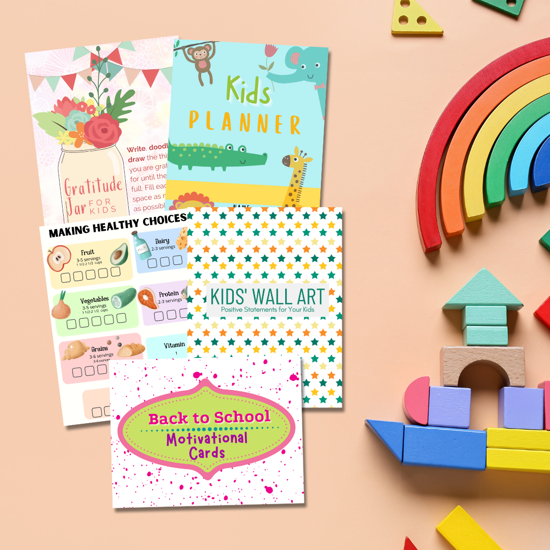 This Kids Planners, Trackers, Wall Arts, and Cards Bundle the ultimate solution for busy parents looking to empower their kids with organization, positivity, and healthy habits.