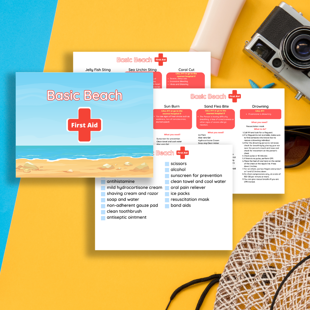 - A 4-page Canva template that includes Basic Beach First Aid