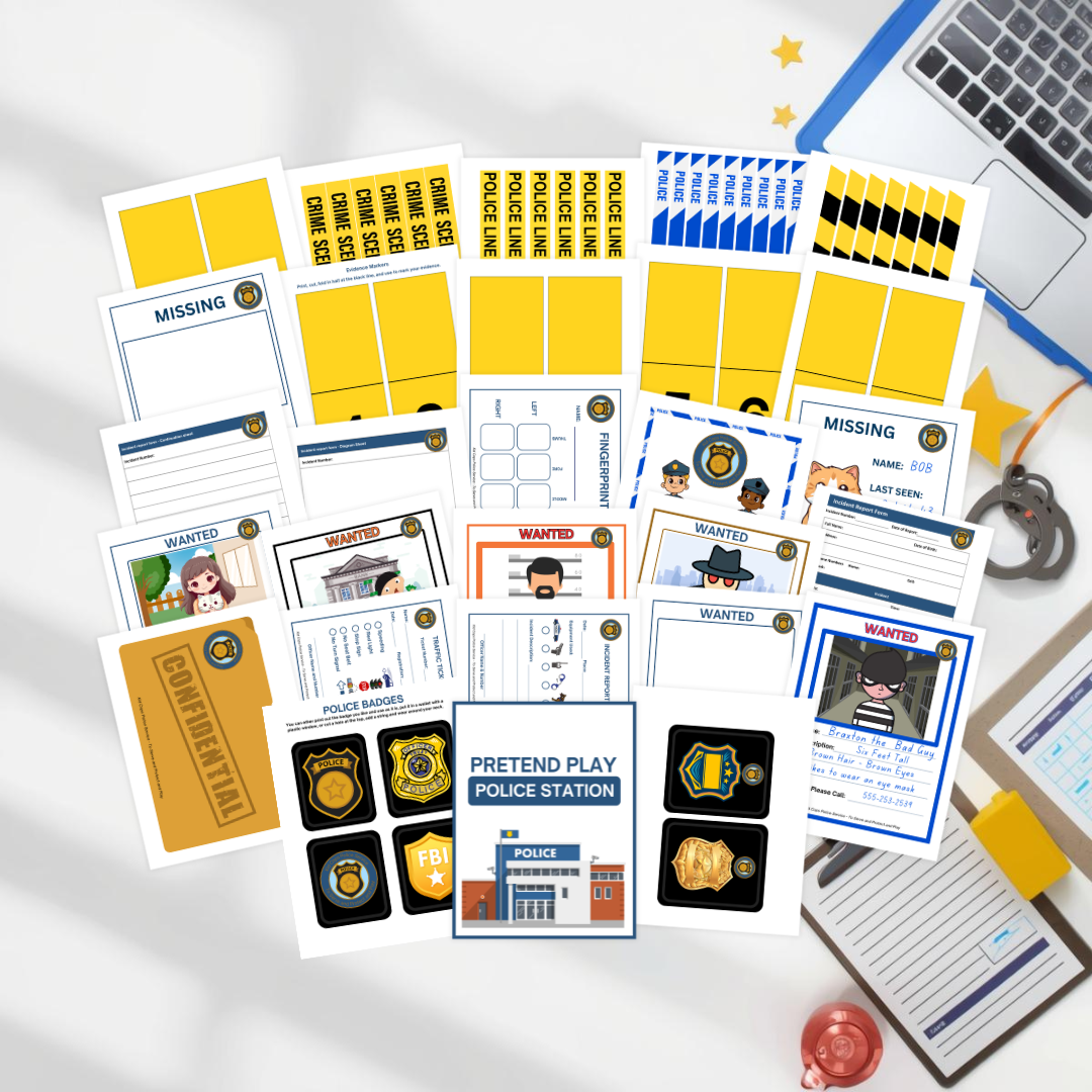 This printable lets kids run their own police station where they take reports, investigate cases, and organize pretend patrol duties while encouraging imaginative storytelling, communication, and cooperative play through familiar community roles.