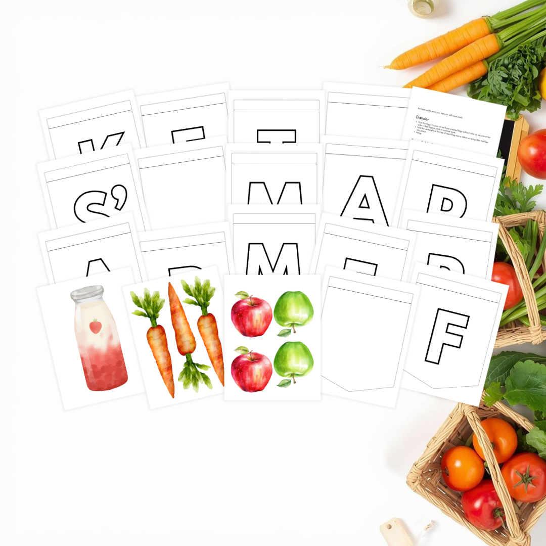This printable set helps kids create their own market stall where they can sort, sell, and exchange pretend food items, encouraging imaginative play while introducing simple concepts like counting, choosing, and conversation.