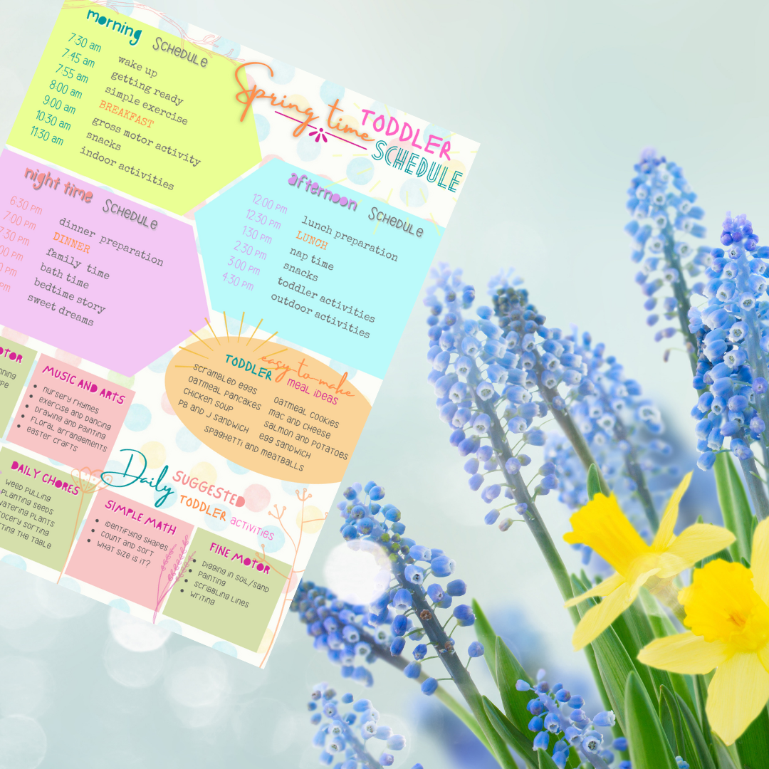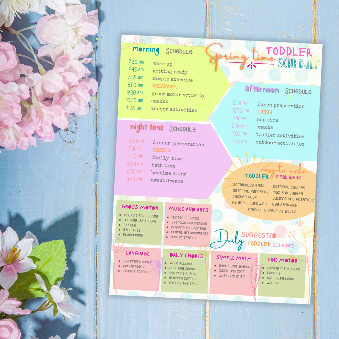 - A Canva template that includes Spring Time Toddler Schedule