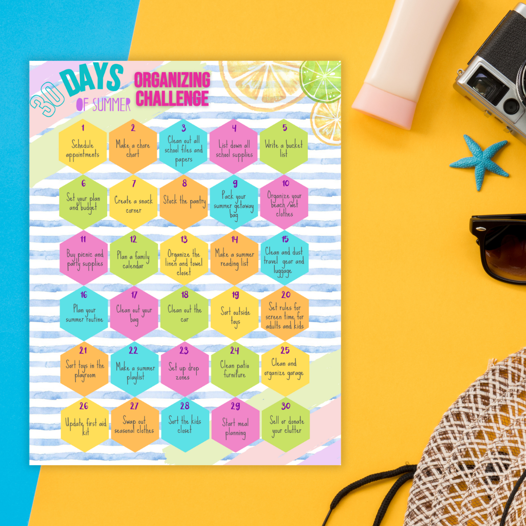 - A Canva template that includes 30 Days of Summer Organizing Challenge
