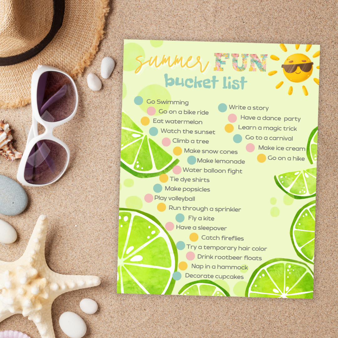 Whether you're planning a staycation, filling your weekends with fun activities, or just looking for spontaneous ideas, this bucket list helps you organize your summer goals on one eye-catching, easy-to-follow sheet.