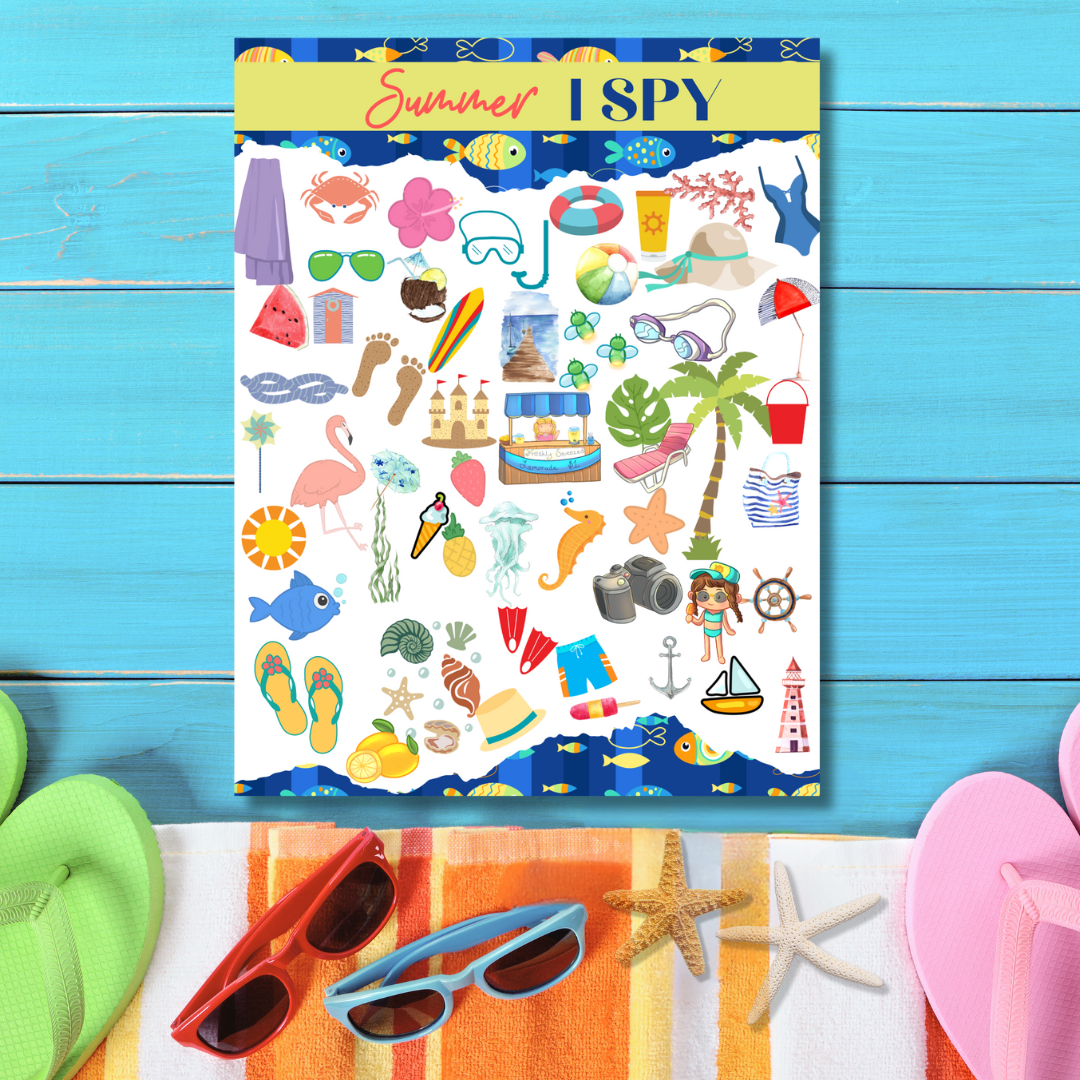 This Summer I Spy game is not only a fun activity, but it also promotes cognitive development and observation skills in children. They will have fun searching for hidden objects such as seashells, sunglasses, ice cream cones, and more, all while enjoying the sunny vibes of summer.