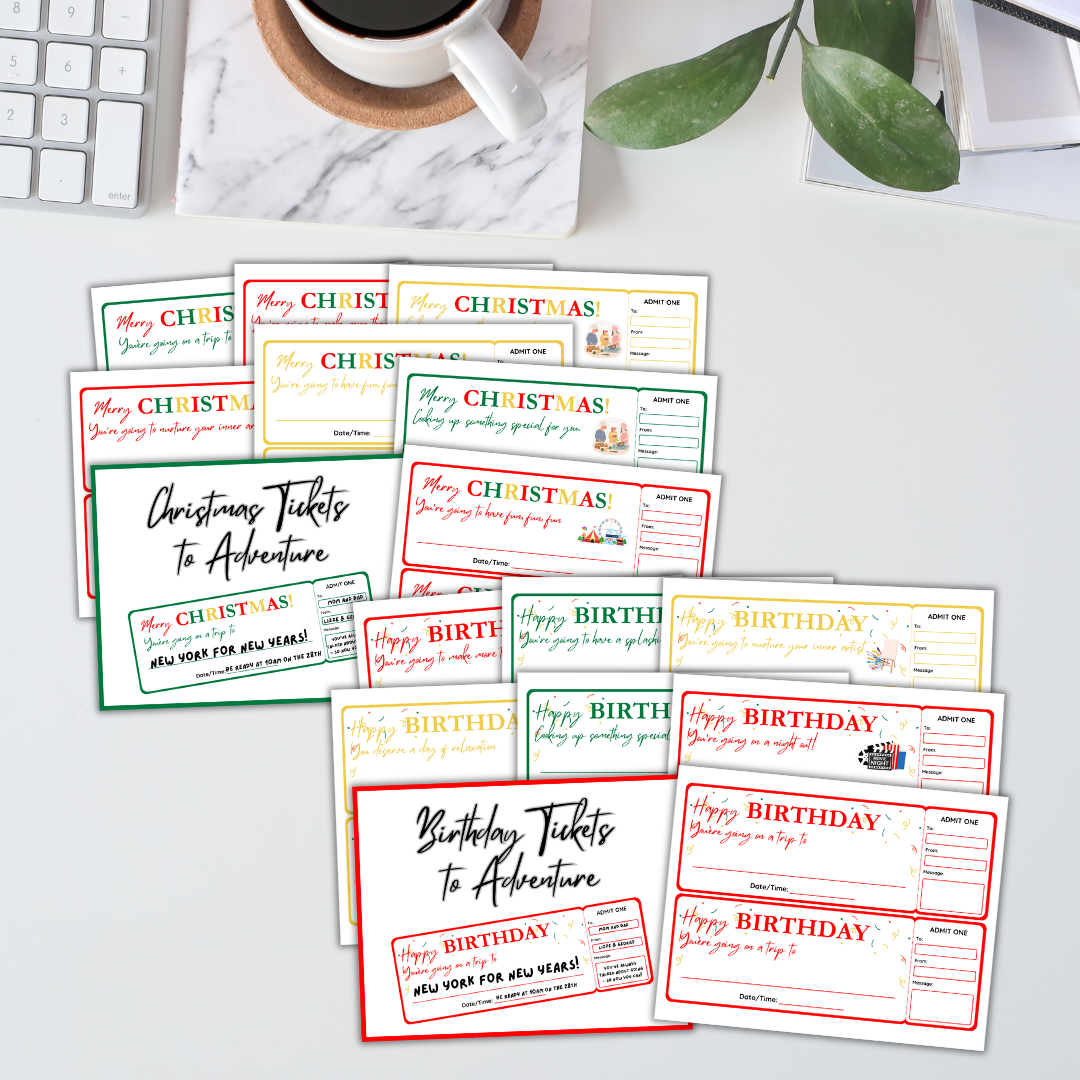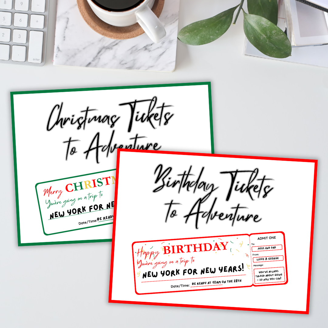 Make Christmas and birthdays unforgettable with Tickets to Adventure, a printable set of tickets designed for gifting unique experiences and activities!